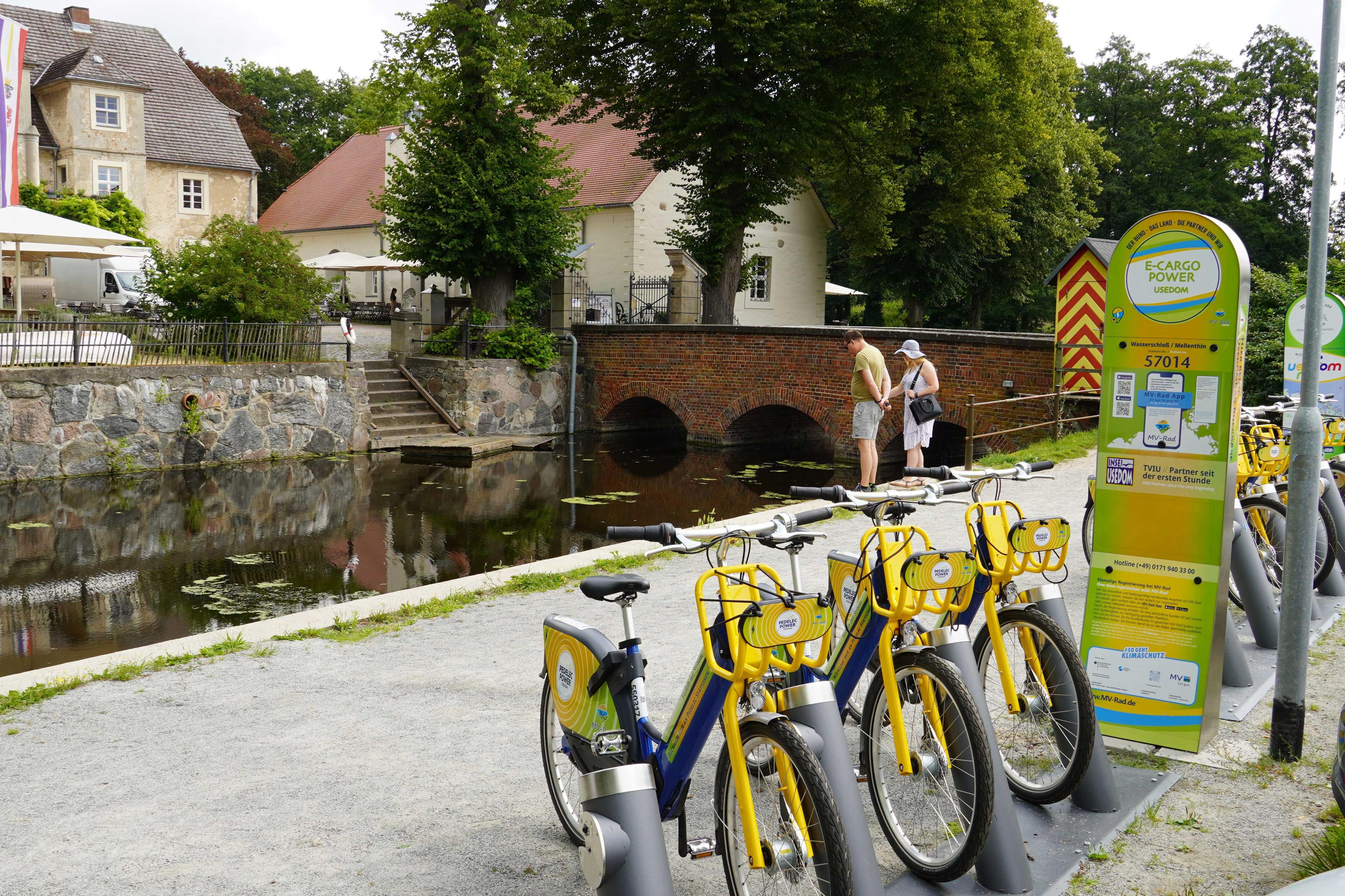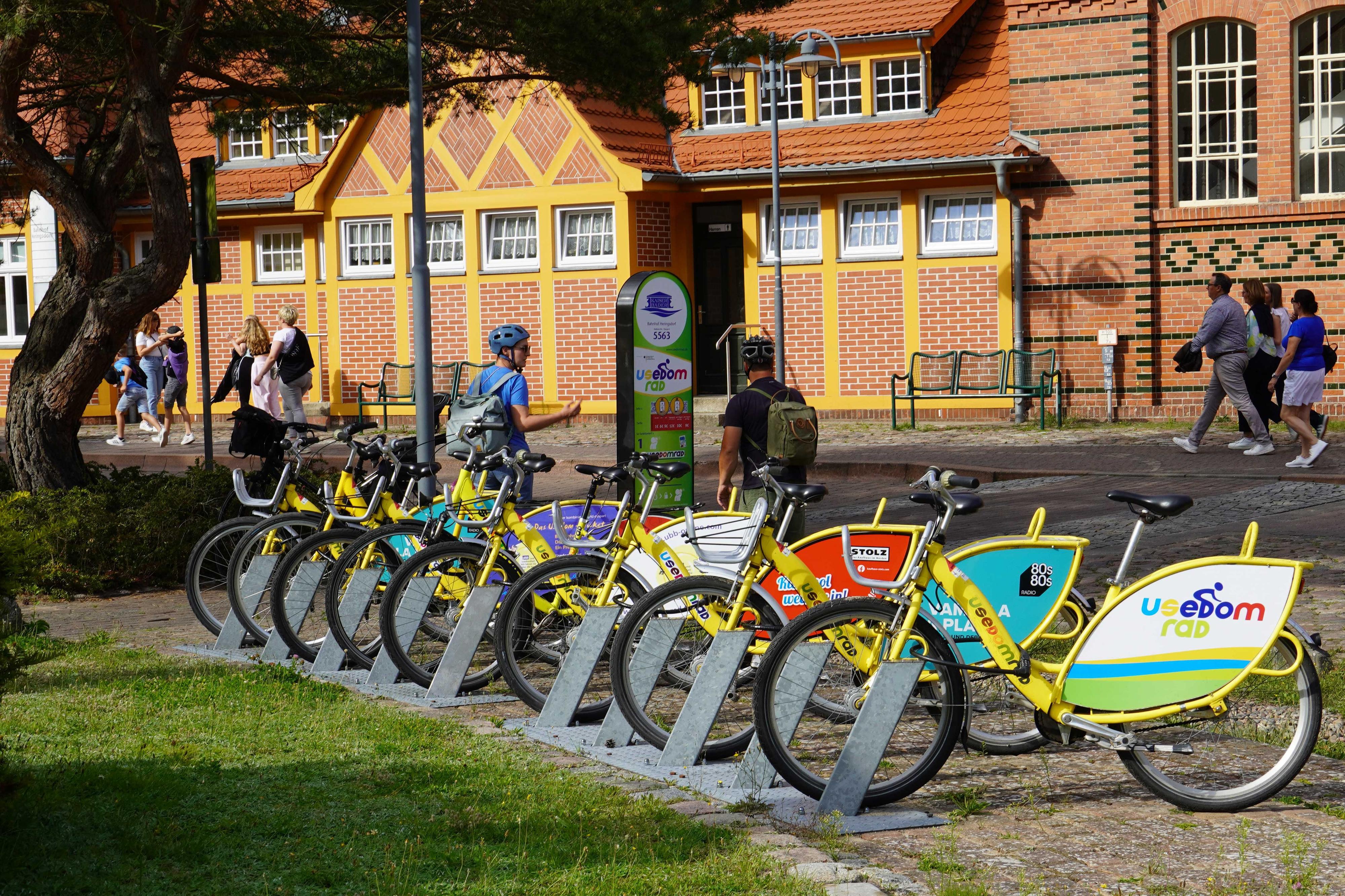 Die Usedomer Bäderbahn (UBB) und die Firma MV-Rad, mit ihrer Tochter UsedomRad, leisten auf der Insel Usedom insbesondere durch die enge Verknüpfung ihrer Verkehrsangebote in dieser Region einen wesentlichen Beitrag zur Weiterentwicklung der touristischen Qualität.Für Gäste und Einheimische bieten beide Unternehmen gerade durch die Möglichkeit der Kombination ihrer Leistungen erheblichen Mehrwert, da praktisch jeder Punkt der Insel Usedom problemlos und staufrei erreicht werden kann. So können Reisende mit den Zügen der UBB die Insel erkunden und an den Ausleihstationen bei den Bahnhöfen bzw. vor Ort auf Leihräder zurückgreifen. Durch die Rädermitnahme in der UBB (entgeltpflichtig) wird eine hohe Flexibilität für jeden Radler möglich.Das moderne landesweite Online-Verleihsystem für Fahrräder (Klassikräder) und Pedelec bietet über die MV-Rad App eine schnelle, funktionale und sichere Ausleihlösung. Diese kann einfach für iPhone und Android- Smartphones aus den jeweiligen Stores heruntergeladen werden. Nach der Registrierung und scannen des QR-Codes am Rad öffnet sich auch schon das Schloss. So erreicht man auch von allen Bahnhöfen der Insel Usedom, und der Stadt Wolgast auf dem Festland, zügig die letzten Kilometer in den jeweiligen Ort. Die Räder können an jeder beliebigen Station auch wieder zurückgegeben werden.Die Tarife sind so variabel gestaltet, so dass für jede Nutzungszweck ein günstiger Preis vorhanden ist (Zeittarif). Das gut strukturierte Stationsnetz von MV-Rad besteht aus über 200 Stationen, die rund um die Uhr auf sind (in der Saison). Der Fuhrpark umfasst hochwertige Tourenräder für groß und klein, Pedelecs/E-Bikes und auch elekrisch betriebene Lastenräder. Besonders innovativ sind die Pedelecs, die sich allein durch das Einhängen in die Andocker der Stationen wieder aufladen.Alle Informationen zum Stationsnetz, zu Tarifen, der Funktionsweise und vielem mehr erhalten Sie auf den Websites von MV-Rad, www.mv-rad.de, www.usedomrad.de und www.pedelec-power-usedom.de.